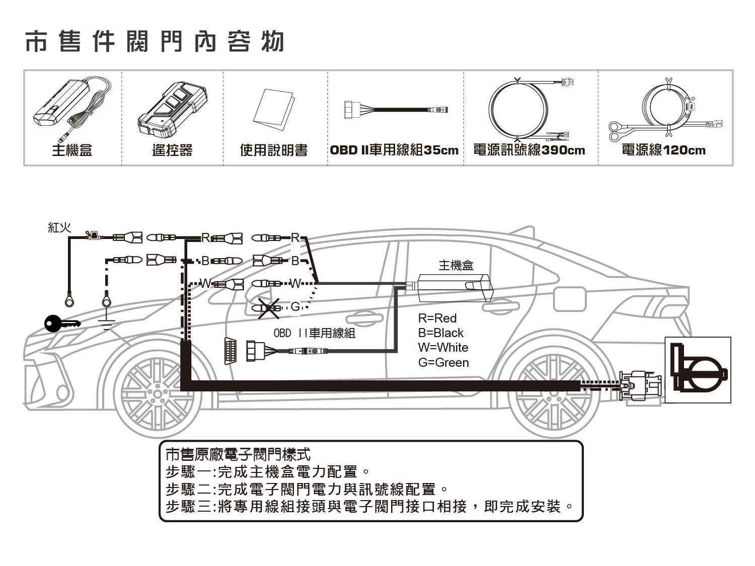 配件提供專用線組,對應BMW、BENZ、VAG原廠電子閥門馬達,不分車型只要可連接OBD2,一樣可以直上安裝並使用Auto功能。