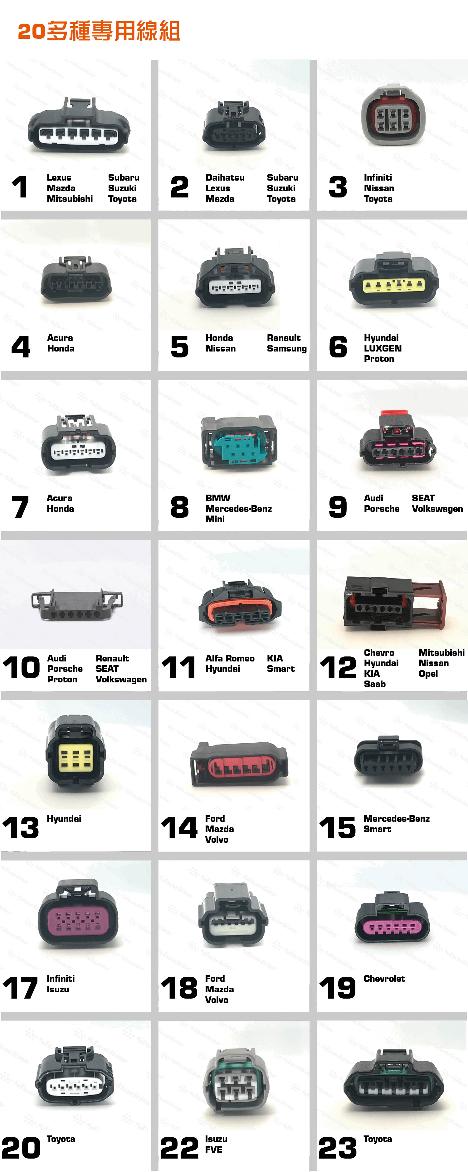 - 電子油門控制器針對每款車型開發專用接頭,於汽車市場中96%的汽車皆可適用,不需擔心車款不適用的問題。